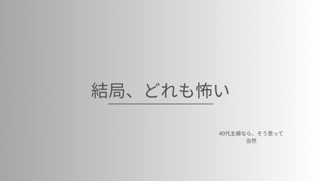 40代主婦にとって、仕事選びは単なる「収入を得る手段」じゃないんです。仕事選び=人生全体への影響になる。だから慎重になるのは、当然のことです。