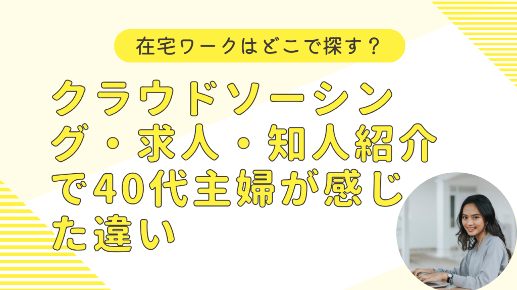 在宅ワークを探していると、「クラウドソーシングがいい」「求人サイトが安心」「知人紹介が一番ラク」…全部”正解”に見えて、逆に動けなくなりませんか?